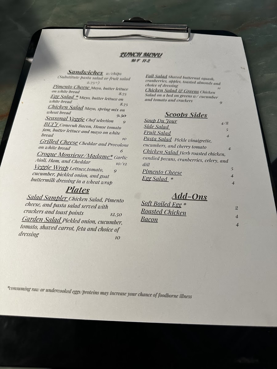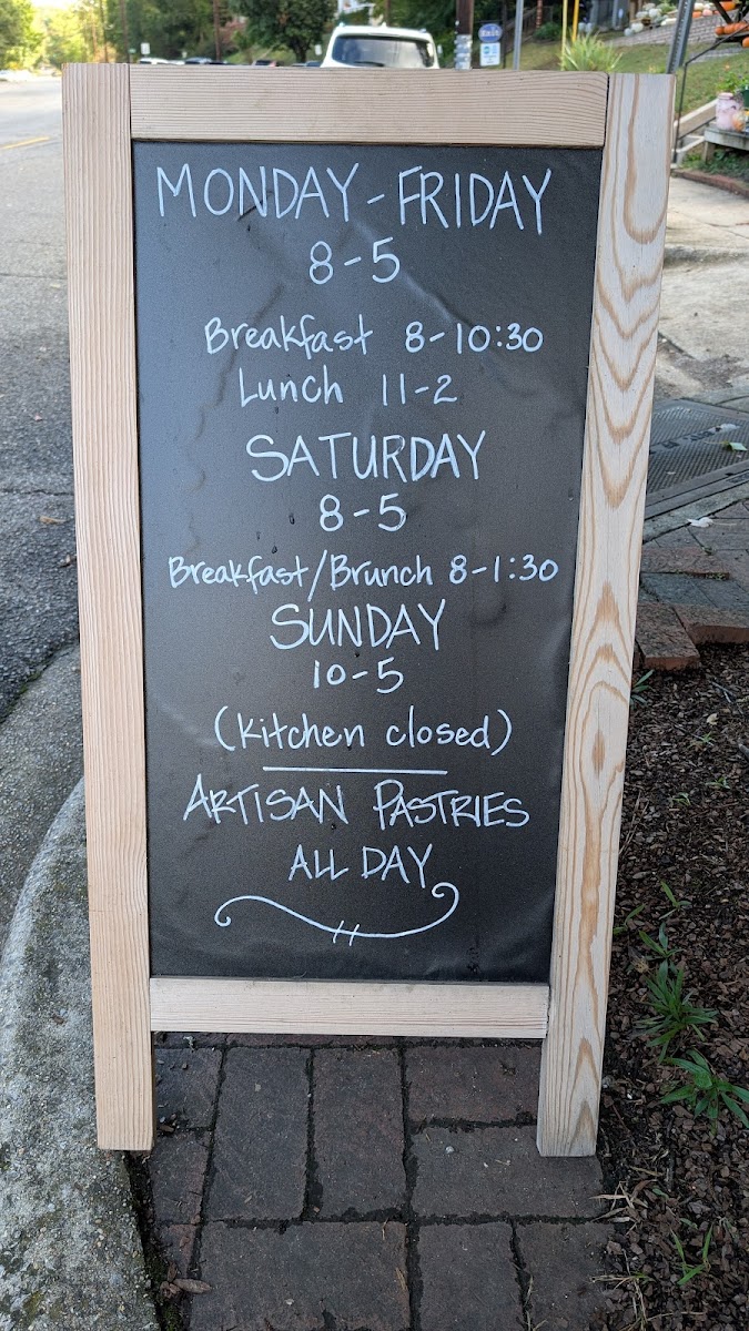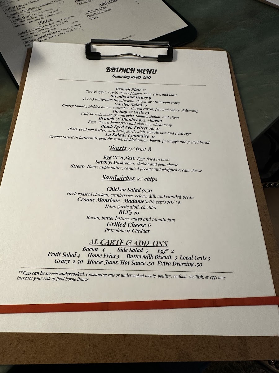 Start your day with classics like a latte paired with a buttery croissant or enjoy a savory brunch plate that includes satisfying items such as biscuits and gravy or a black-eyed pea fritter. Midday diners can linger over seasonal soups like French onion or a hearty cup of corn chowder, alongside fresh salads and unique small plates such as beef or chicken kabobs.